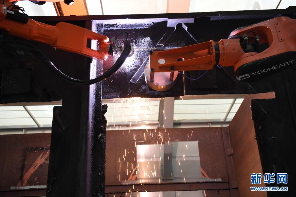 在报废货车拆解生产线上,机器人手臂对车厢进行拆解(5月26日摄)。新华社记者 刘军喜 摄