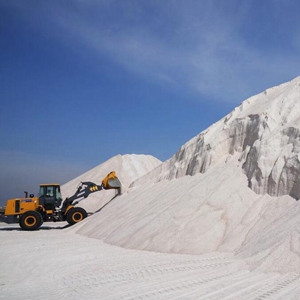 5月27日,唐山海港经济开发区长芦大清河盐场的工人操作机械设备收获春盐(无人机照片)。时下,正值河北省唐山市长芦大清河盐场春盐收获时节,工人利用晴好天气加紧收获。新华社记者 杨世尧 摄