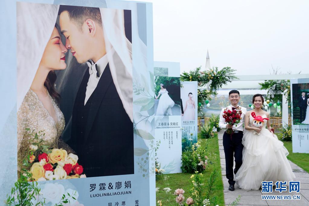 5月27日,新人步入重庆市北碚区中铁二十二局五公司集体婚礼现场。