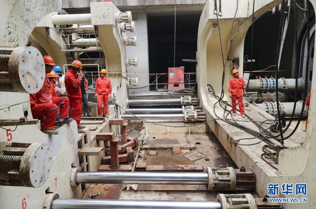 5月27日拍摄的上海地铁14号线静安寺站站厅层顶管工程入口端工程现场。