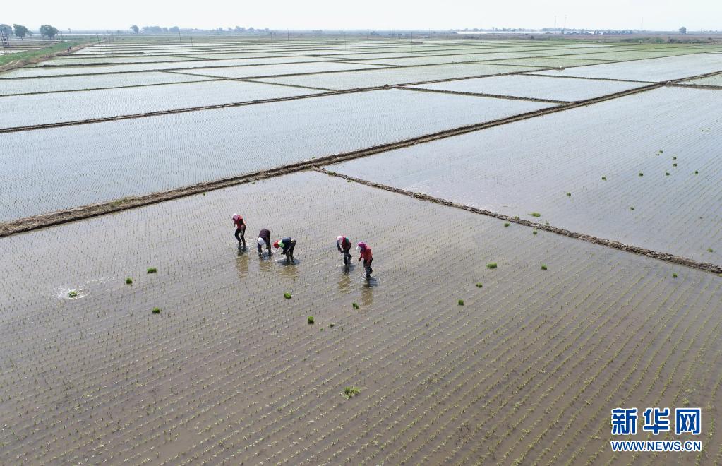 时下,河北省唐山市水稻种植区的新插稻秧正值缓苗扎根时节,农民抢抓农时进行秧苗管护,田间呈现一派繁忙景象。