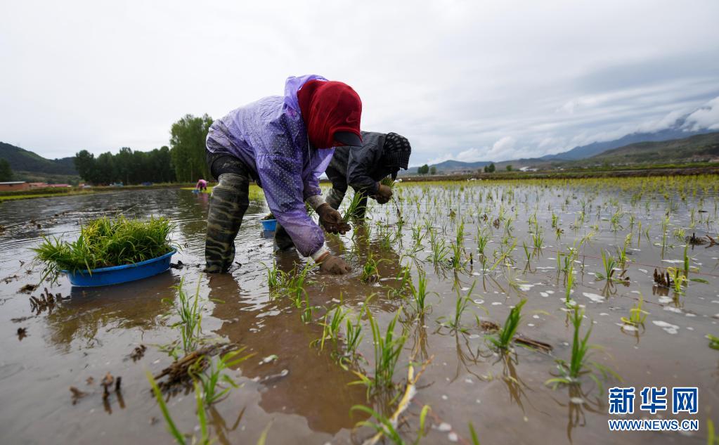 近日,河北隆化县的水稻种植户抢抓农时,开展水稻插秧工作,稻田间呈现一派繁忙景象。隆化县出产的隆化大米是国家地理标志保护产品。近年来,隆化县通过改良升级水稻品种,规范种植标准,推动大米产业提质增效。