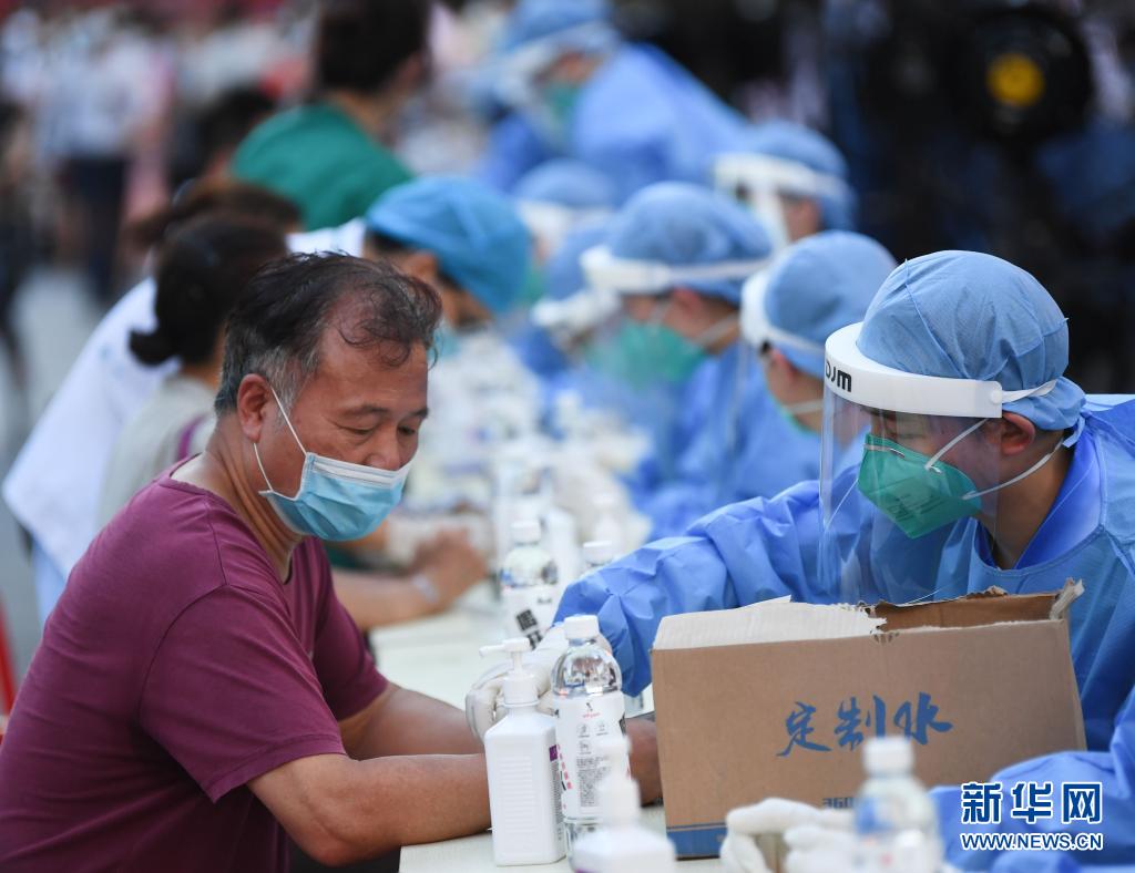 广州市荔湾区于5月26日至27日开展全员核酸检测。各级医务人员紧急响应,在各街道、社区检测点一线,冒着高温进行核酸检测工作。