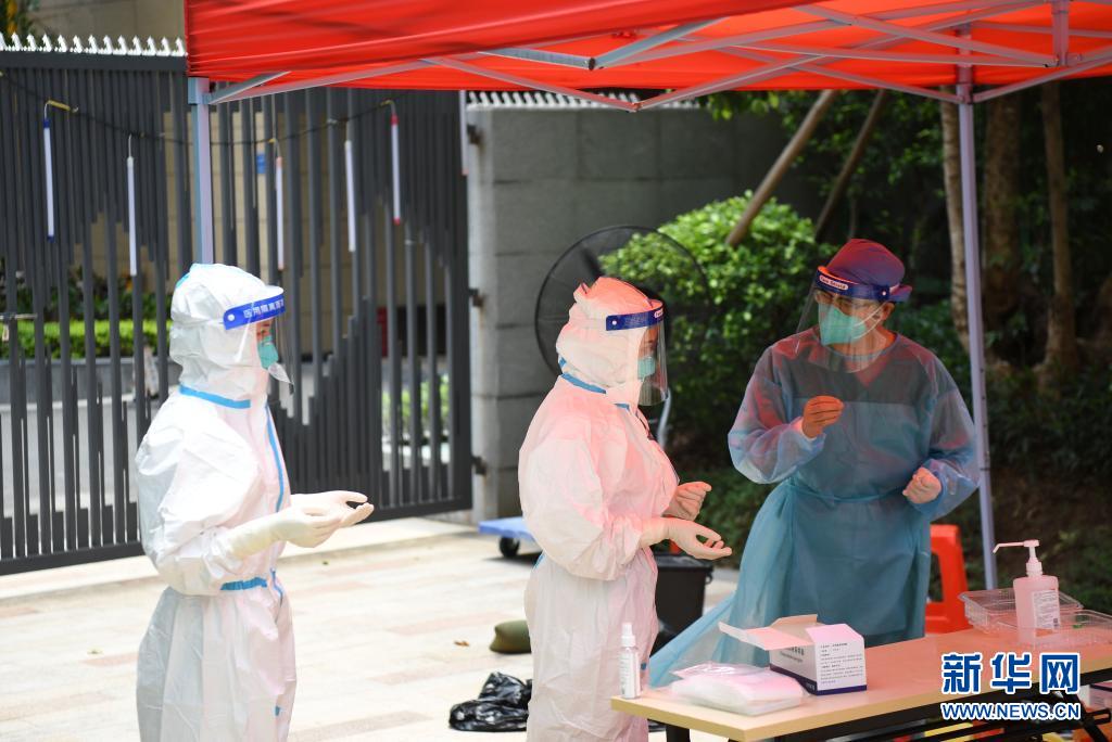 广州市荔湾区于5月26日至27日开展全员核酸检测。各级医务人员紧急响应,在各街道、社区检测点一线,冒着高温进行核酸检测工作。