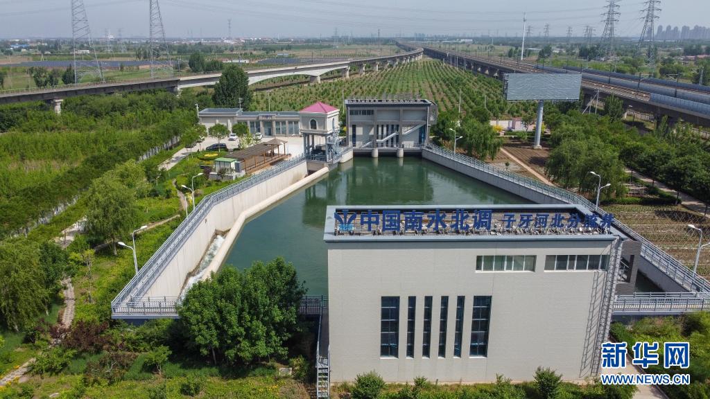 5月27日拍摄的位于天津市北辰区的南水北调中线天津干线子牙河北分流井(无人机照片)。新华社发(孙凡越 摄)