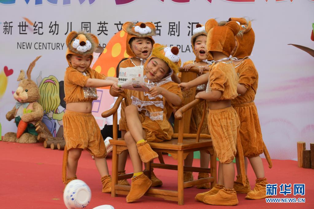 5月27日,新世纪幼儿园小朋友表演英文童话剧《小狮子找食物》。