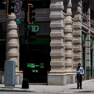 5月27日,行人站在美国首都华盛顿的一家银行前。