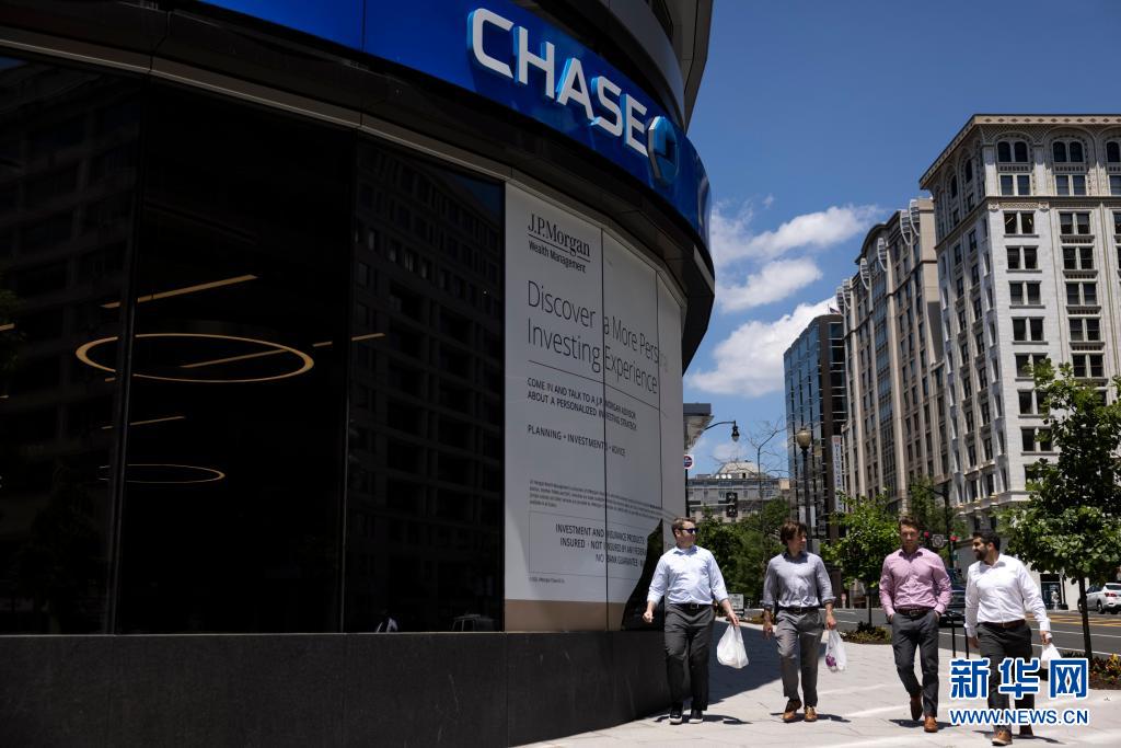 5月27日,行人走过美国首都华盛顿街头的一家银行。