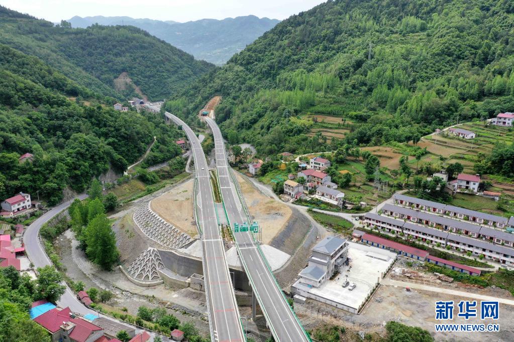 5月28日,车辆行驶在湖北省保神高速公路保康县后坪段(无人机照片)。新华社发(杨韬 摄)