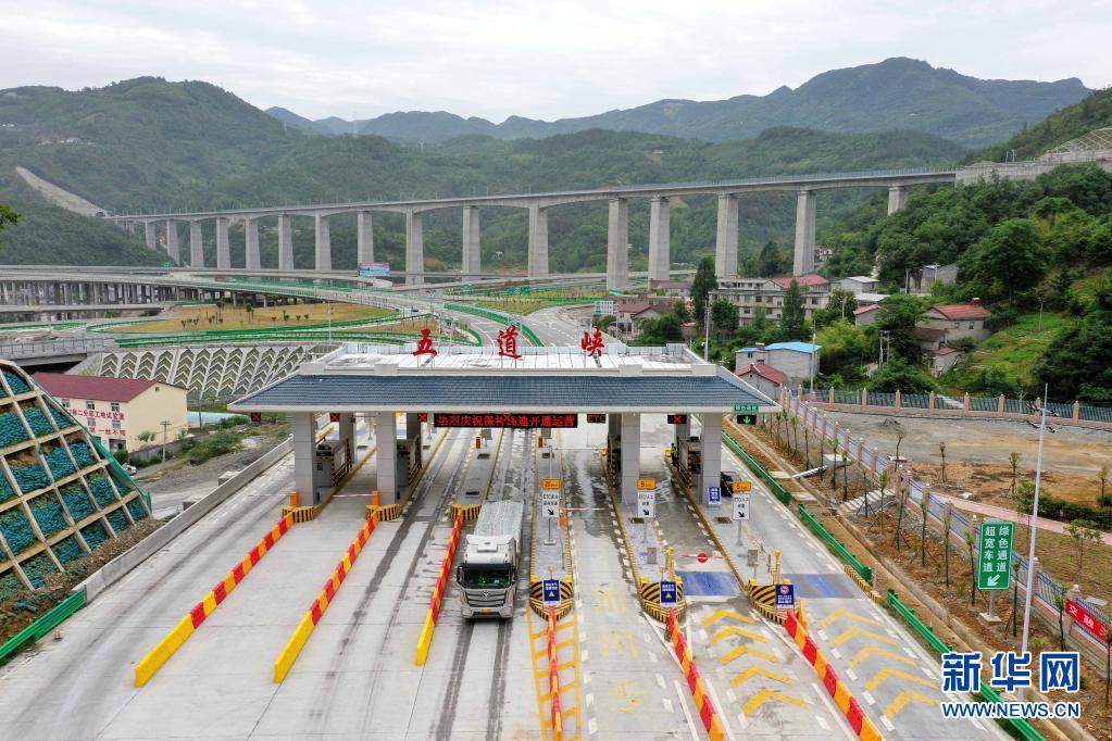 5月28日,车辆经过湖北省保神高速公路五道峡收费站(无人机照片)。新华社发(杨韬 摄)