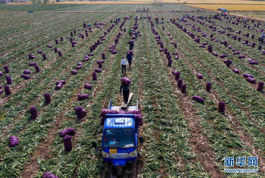 近日,江苏省兴化市大营镇联镇村的红皮洋葱进入采收期,当地农民加紧采收,销往各地市场。联镇村通过大力发展红皮洋葱种植,带动农民增收致富。