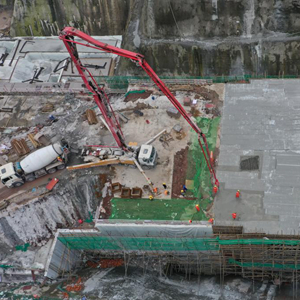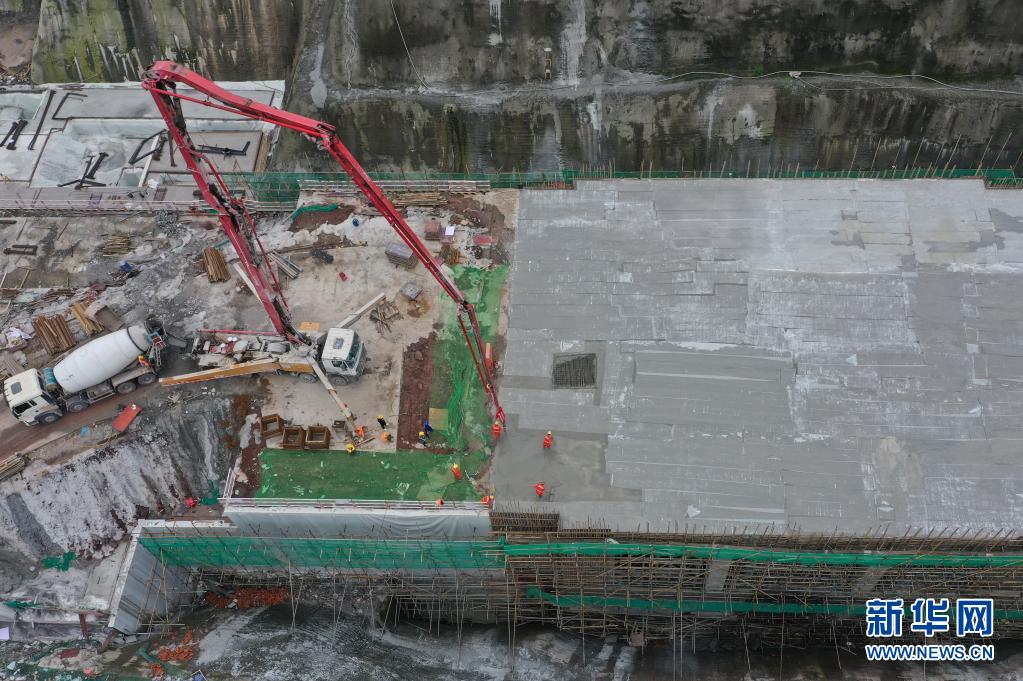5月28日,工人在重庆轨道交通四号线二期复盛站项目施工现场作业(无人机照片)。