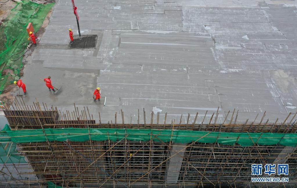 5月28日,工人在重庆轨道交通四号线二期复盛站项目施工现场作业(无人机照片)。