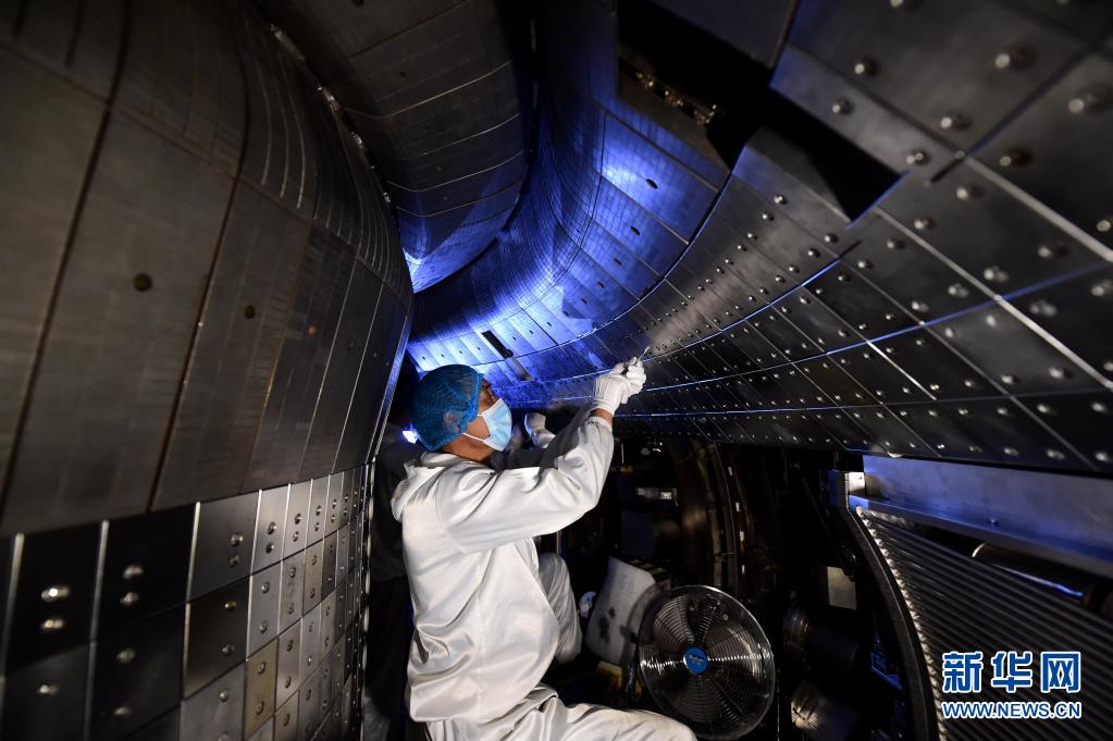 在中科院合肥物质科学研究院,工作人员对全超导托卡马克核聚变实验装置(EAST)进行升级改造(4月28日摄)。新华社记者 黄博涵 摄
