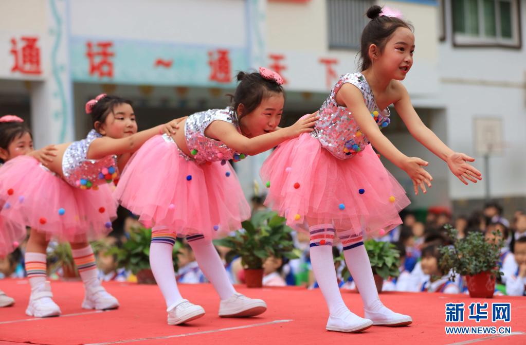 5月28日,湖南省张家界市武陵源区索溪中心幼儿园的小朋友在表演文艺节目。“六一”国际儿童节临近,各地举行丰富多彩的活动,让孩子们在欢声笑语中迎接自己的节日。新华社发(吴勇兵 摄)