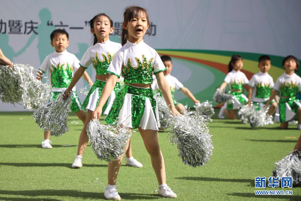 5月28日,兰州市城关区保育院学生在活动现场进行素质操展演。