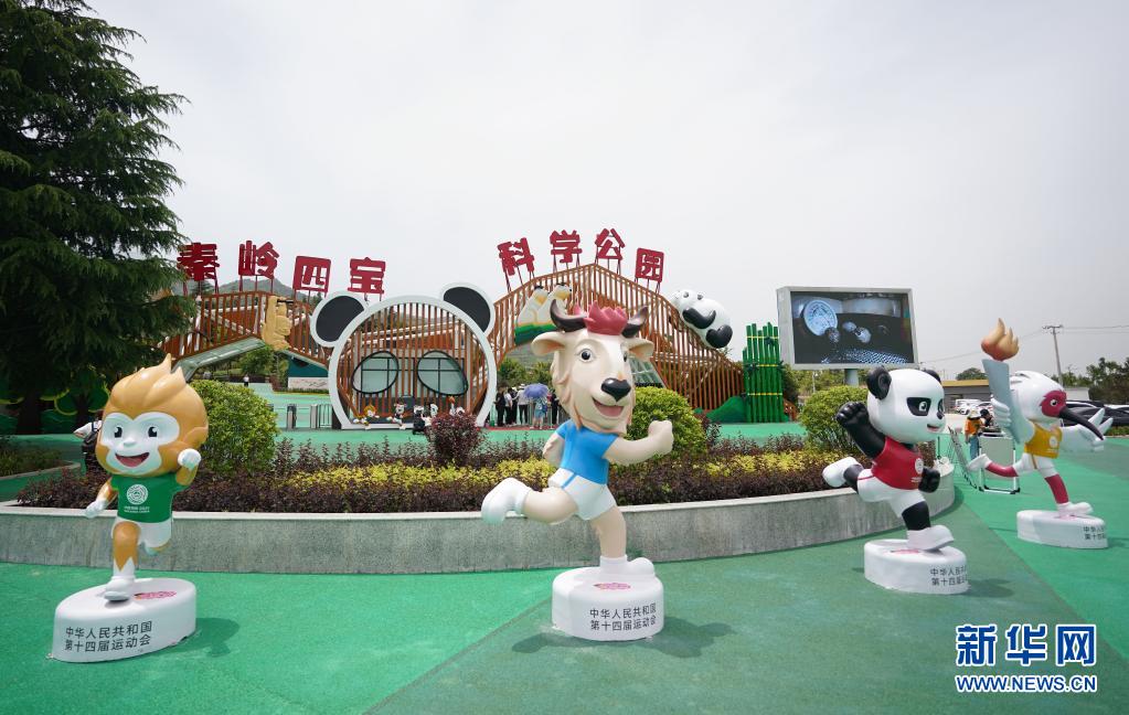 5月28日,秦岭四宝科学公园外摆放着十四运会吉祥物“秦岭四宝”。