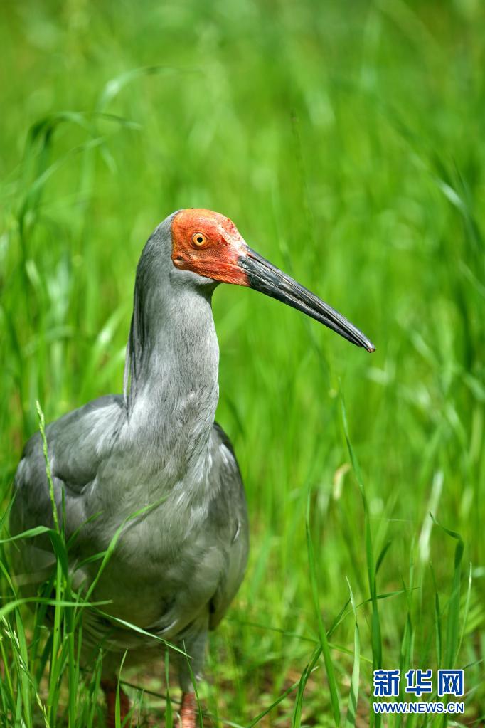 5月28日在秦岭四宝科学公园拍摄的朱鹮。新华社记者 李一博 摄