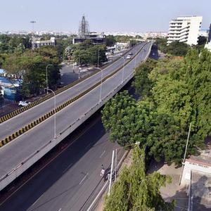 5月28日,印度海得拉巴街头由于封禁措施车辆稀少(航拍照片)。