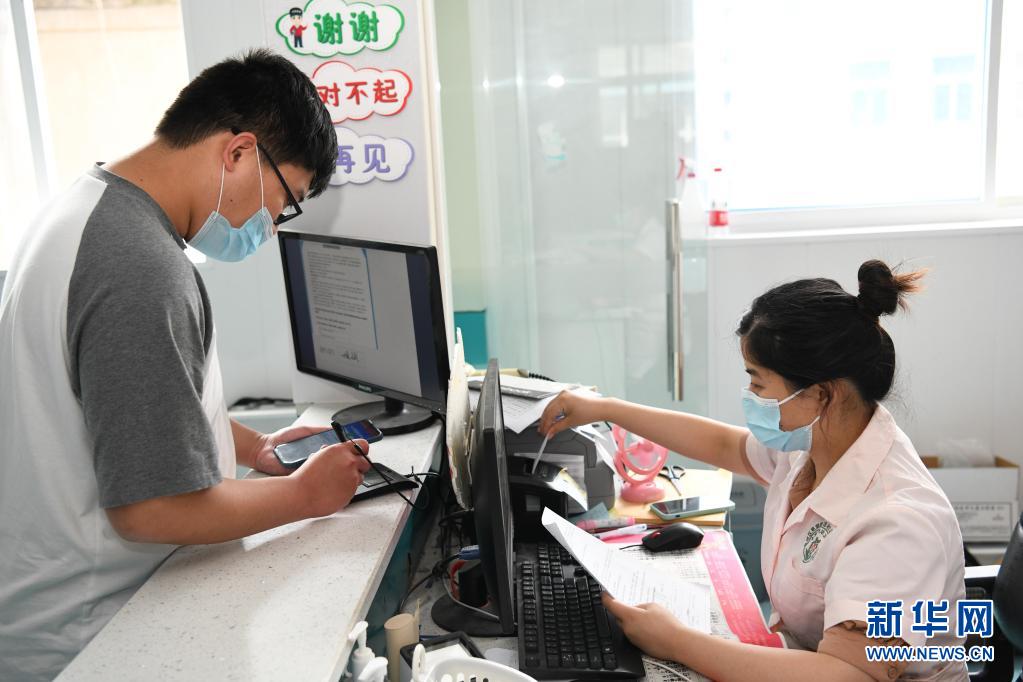 5月28日,在合肥市包河区芜湖路街道社区卫生服务中心,一市民(左)在接种新冠疫苗前进行个人信息确认。新华社记者 张端 摄