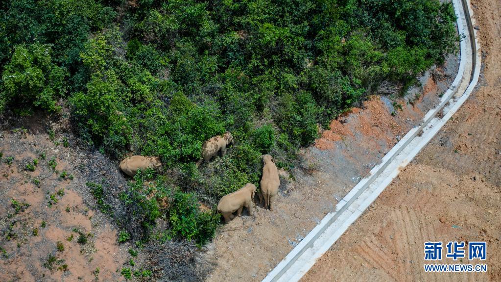 5月28日在云南省玉溪市峨山县境内拍摄的象群(无人机照片)。