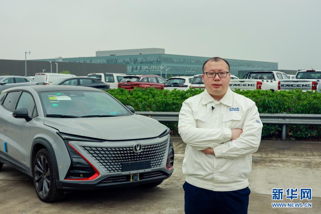 5月27日,在重庆两江新区长安汽车全球研发中心,万凯林在测试场地内和一台试验车合影。