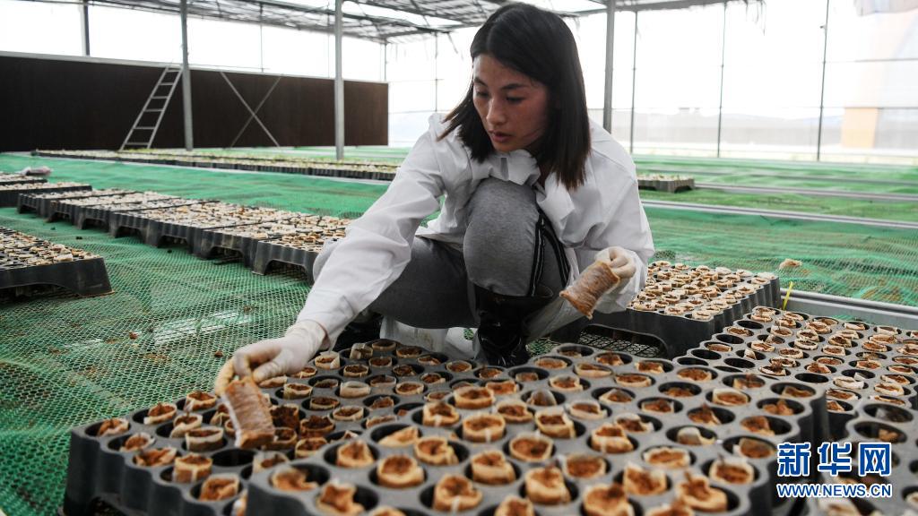 5月28日,在广西融安县西山林场,何振革的团队成员在组装育苗的基质杯。新华社记者 张爱林 摄