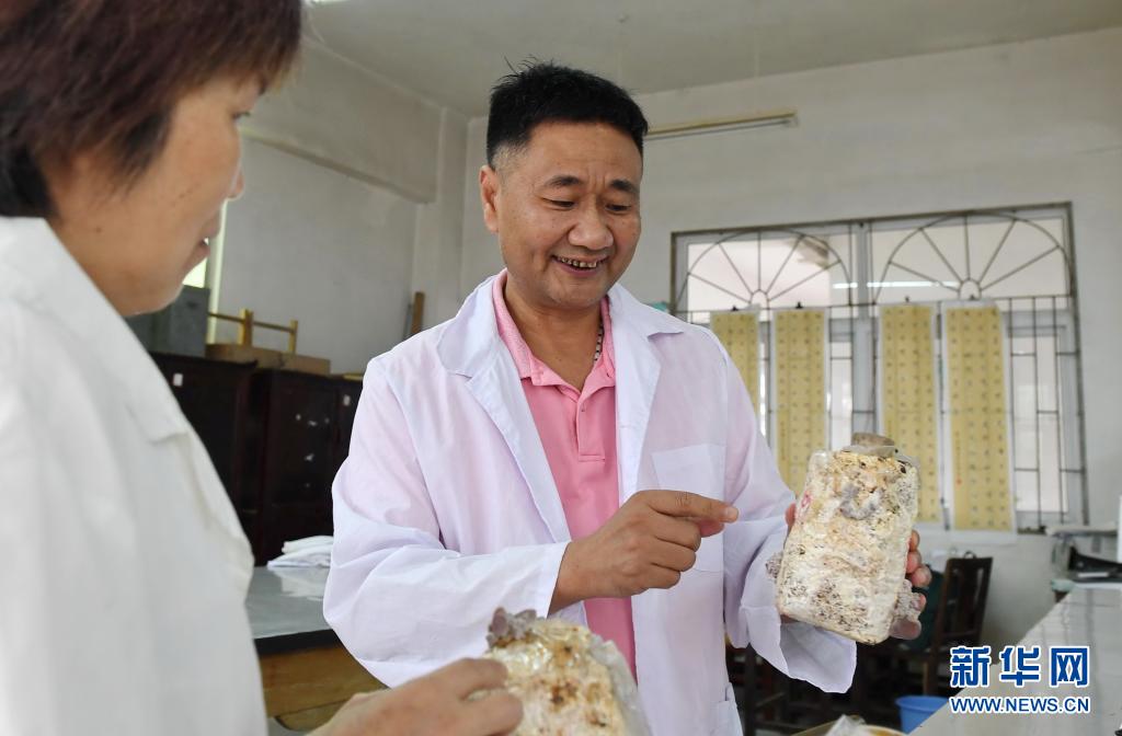 5月27日,人称“菇王”的科技特派员、福建省南平市农业学校教师刘瑞璧在讲授毛木耳在不同环境条件下栽培成龙爪瓜的培育情况。