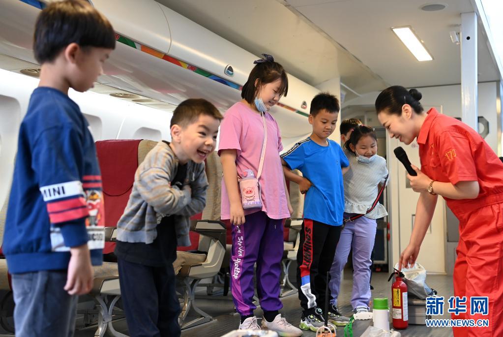 当日,天津航空在天津航空基地和乘务员培训基地举办第七届儿童开放体验日活动。来自天津多个小学的学生代表近距离体验了飞行准备区、运行指挥中心、模拟机舱,学习航空安全和航班运行知识,迎接即将到来的“六一”国际儿童节。