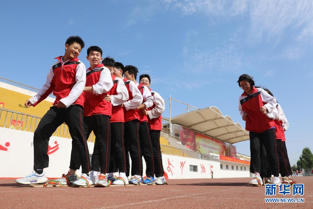 5月29日,温县一中高三学生在操场上参加“齐心协力”跑比赛。