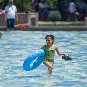 5月29日,一名女孩在乌兹别克斯坦首都塔什干一处喷泉内戏水。