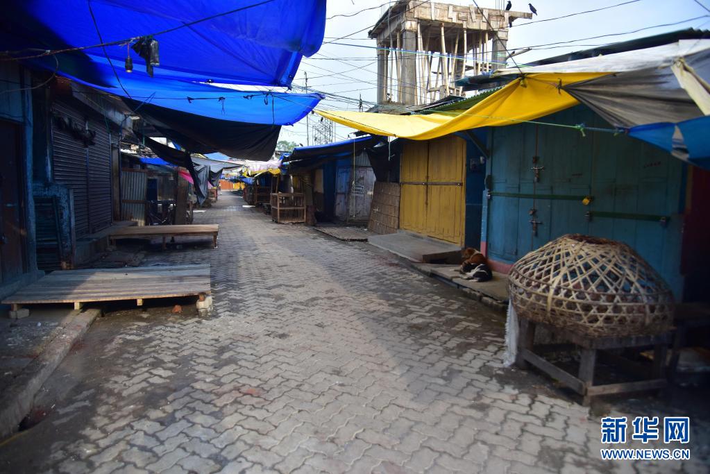 这是5月29日在印度阿萨姆邦瑙贡拍摄的关闭的市场。