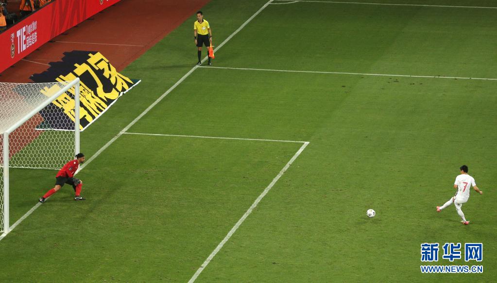 5月30日,中国队球员武磊(右)在比赛中主罚点球命中。