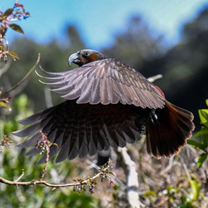 这是在新西兰首都惠灵顿齐兰迪亚自然保护区拍摄的卡卡鹦鹉(2020年9月9日摄)。新华社记者 郭磊 摄