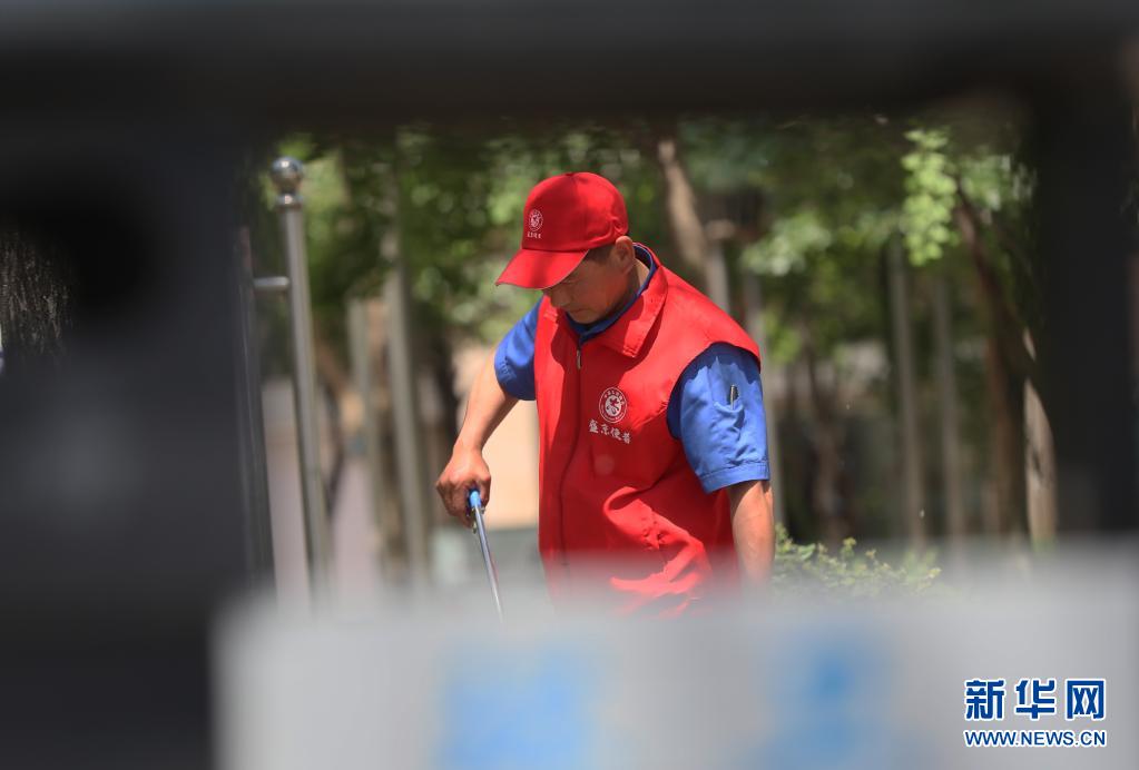 5月24日,在沈阳市苏家屯区火车站站前公园,谷多绵在捡拾烟蒂和垃圾。新华社记者 杨青 摄