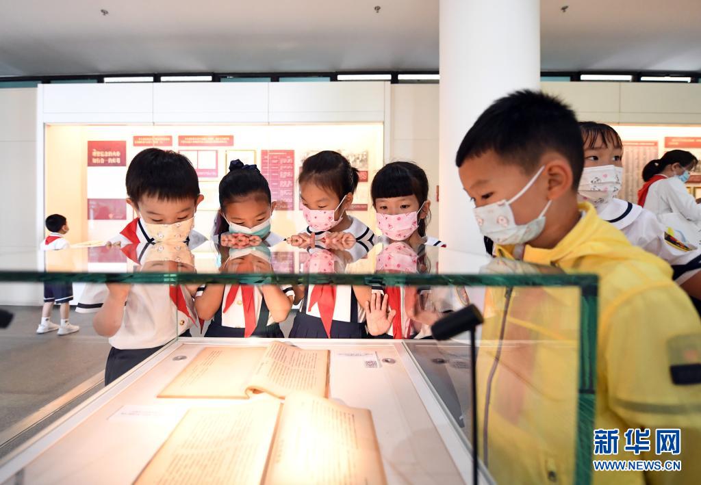 5月31日,参加活动的少先队员们参观北京大学校史馆。