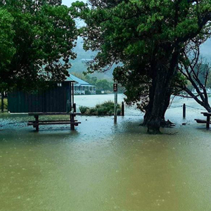 5月31日,车辆在新西兰南岛城市克赖斯特彻奇被水淹没的路面行驶。