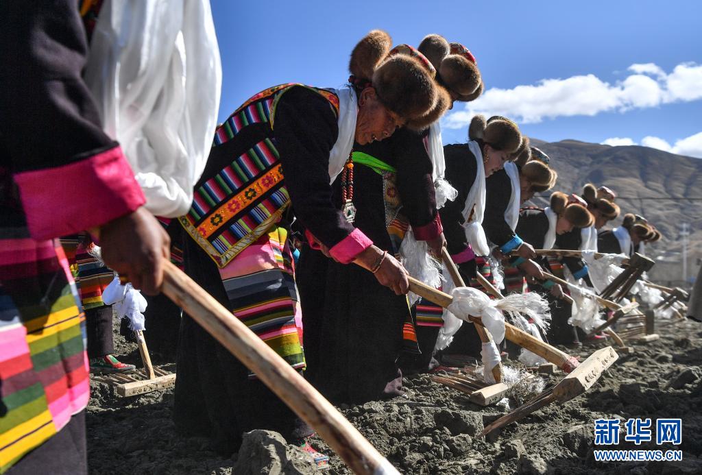 身着盛装的西藏山南市乃东区克松社区居民在春耕仪式中(3月16日摄)。新华社记者 晋美多吉 摄