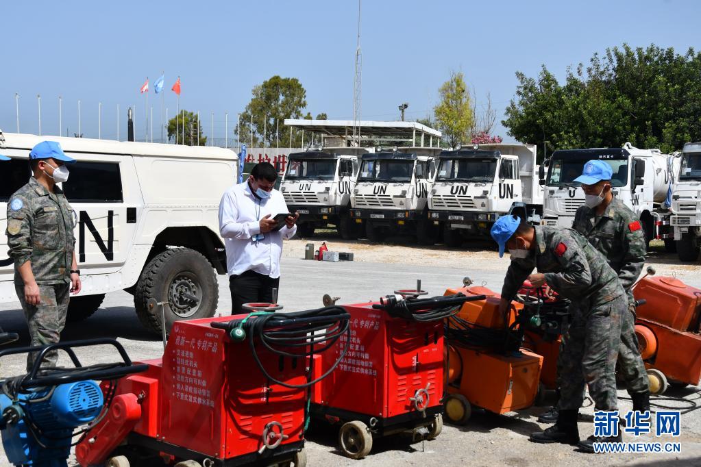 5月31日,在黎巴嫩南部辛尼亚村中国营,联黎部队司令部装备核查组官员检查工程建筑类装备。