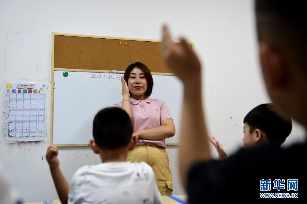5月25日,在芜湖市翰宁教育尊纳儿童发展中心,周敏在给孩子们上课。新华社记者 黄博涵 摄