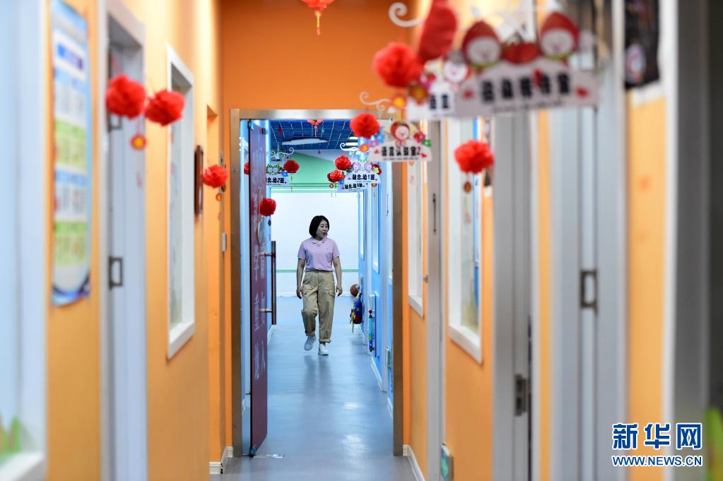 5月25日,在芜湖市翰宁教育尊纳儿童发展中心,周敏在巡视课堂。新华社记者 黄博涵 摄