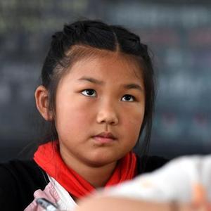 这是一张拼版照片,上图为:张清语在清溪村卫生室门前的广场上玩耍(2019年8月30日摄);下图为:5月27日,张清语在清溪村卫生室门前的广场上看书。新华社记者刘军喜摄