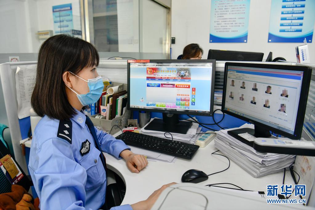 6月1日,在天津市公安交通管理局车辆管理所,民警在后台审核驾驶人上传的机动车电子驾驶证申报信息。