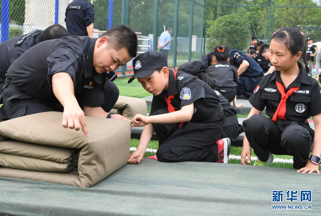 6月1日,安徽省合肥市包河区油坊岗社区儿童在合肥铁路公安处特警支队参加“警营里过六一”主题活动。