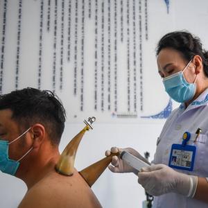 6月1日,在锡林郭勒盟蒙医医院内,医务人员准备为患者拔牛角罐。