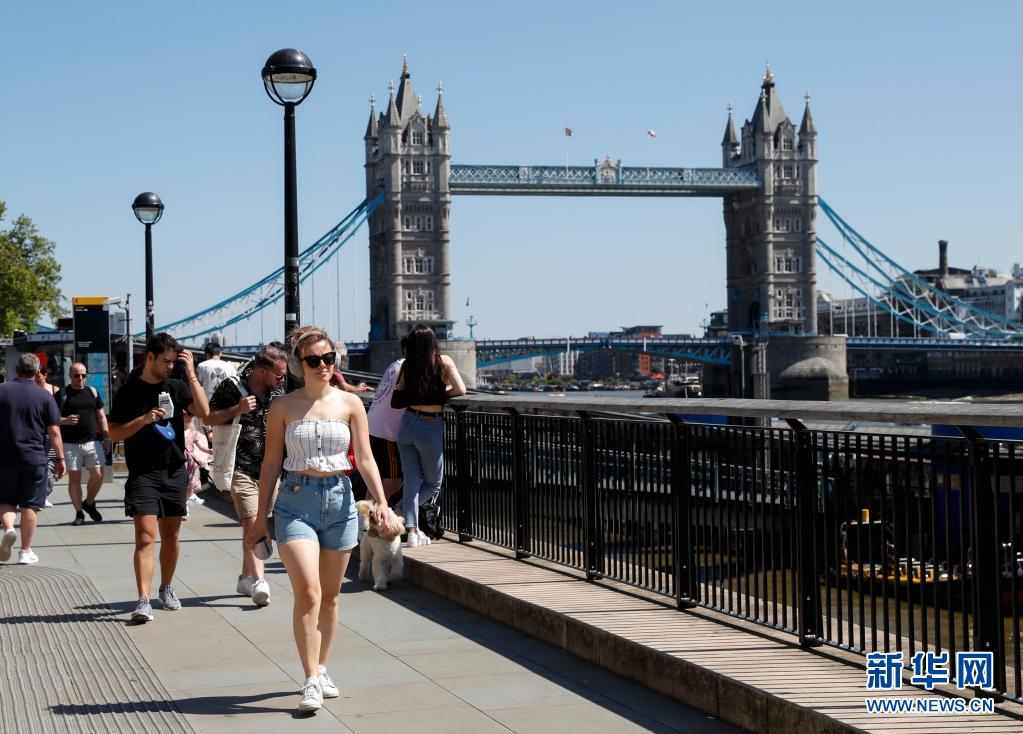 6月1日,人们在英国伦敦的泰晤士河北岸行走。