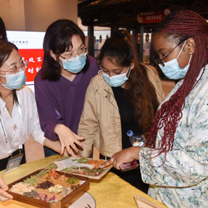 6月1日,山东科技大学的留学生在中医体验馆体验刮痧。