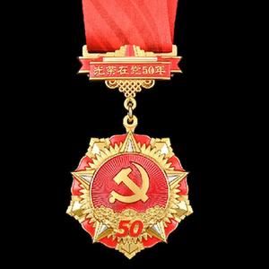 这是5月26日拍摄的“光荣在党50年”纪念章。 新华社记者李响摄