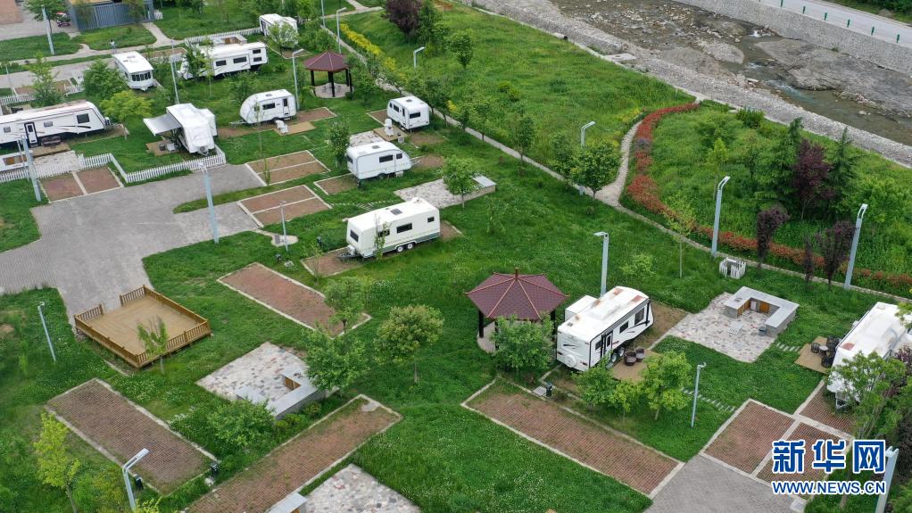 这是5月20日拍摄的陇南市康县长坝镇花桥村房车营地(无人机照片)。