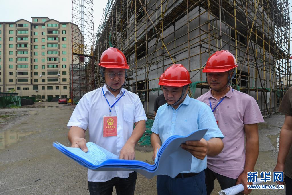 6月2日,在浙江省湖州市吴兴区东林镇星火村,当地人大代表及村民代表、乡贤对星火村农民新村建设项目的施工进展情况进行监督检查。该农民新村项目共有近300套公寓,将于2021年底交付。